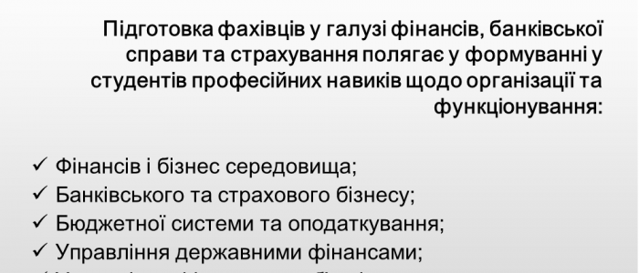 • Презентація спеціальності Фінанси