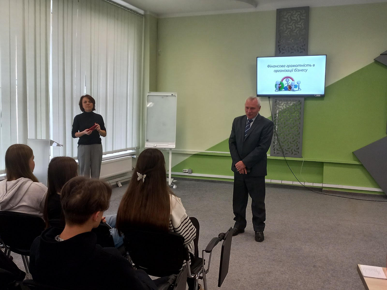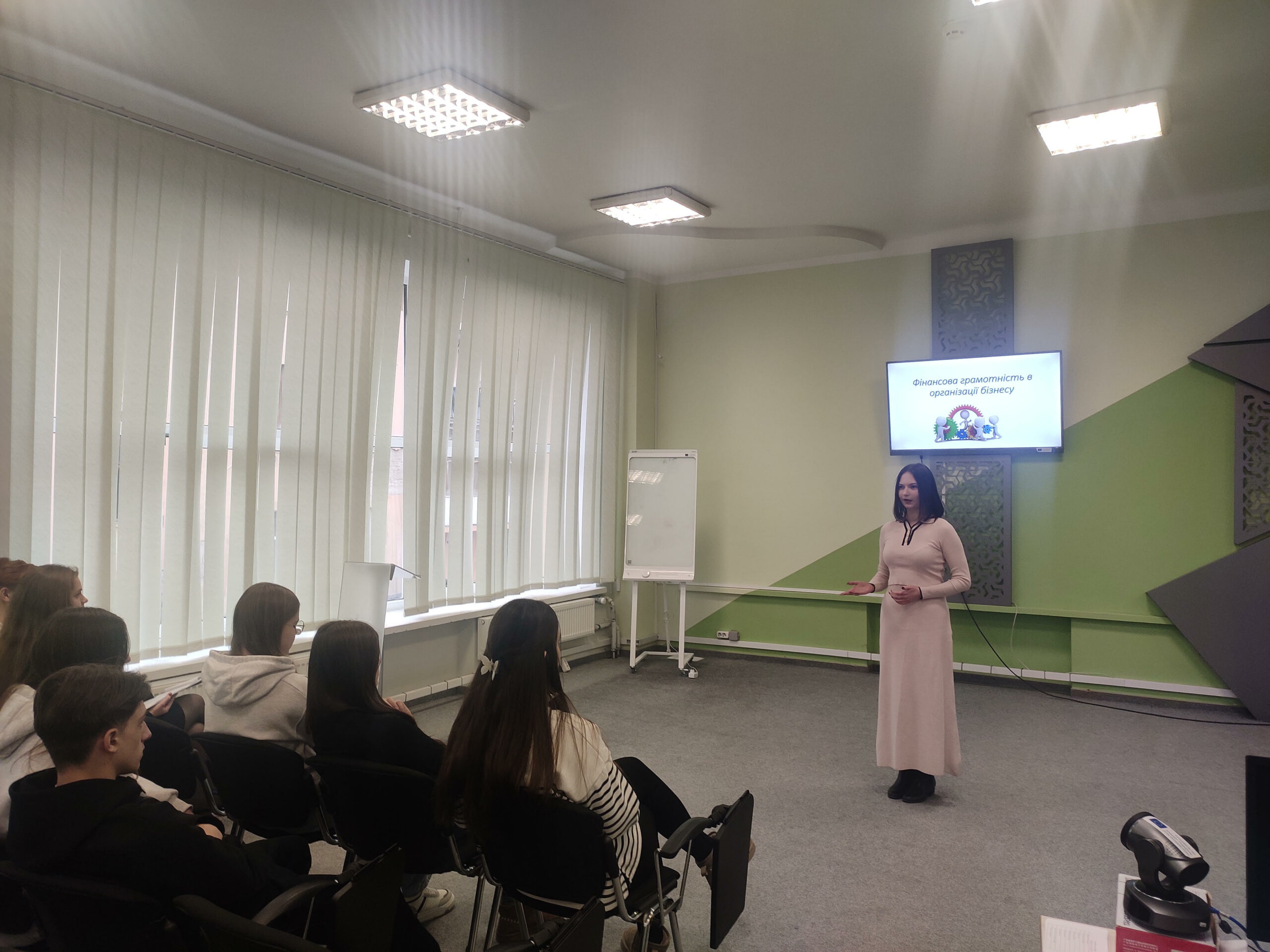 Програма включала захоплюючу лекцію-дискусію, яку провела доцент Тетяна Солоджук. Вона розповіла про особливості організації власної справи та основи фінансового управління, говорили про те, коли варто починати власну справу та що потрібно для цього потрібно.
