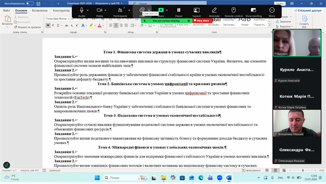 Кафедрою фінансів КНУВС було проведено І етап Всеукраїнської студентської олімпіади з дисципліни «Фінанси». Згідно Наказу №41 від 13.01.2026 р. «Про затвердження графіків І етапу Всеукраїнської студентської олімпіади та Всеукраїнського конкурсу студентських наукових робіт з галузей знань і спеціальностей у 2025/2026 навчальному році» та враховуючи наказ ректора №63 від 19.01.2026 р. журі олімпіади затвердило дистанційну форму проведення І етапу студентської олімпіади з дисципліни «Фінанси».